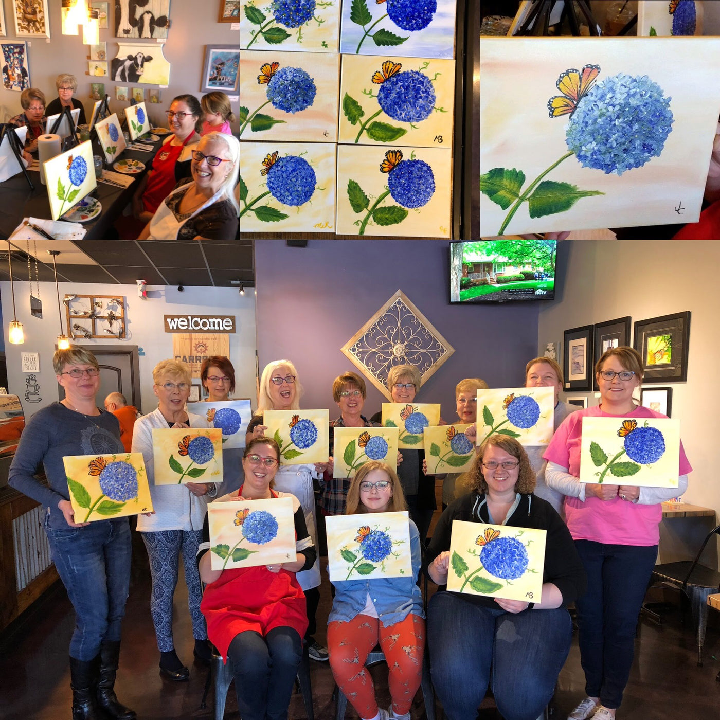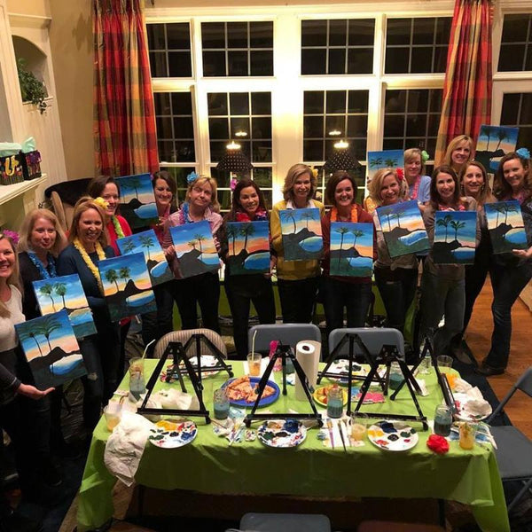 We supply professional art instruction, canvases, easels, paints, brushes, palettes, plastic cloth's and paper towels. Choose a painting to re-create @ View art choices below